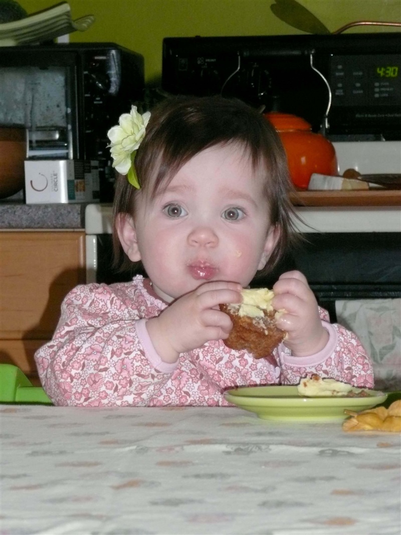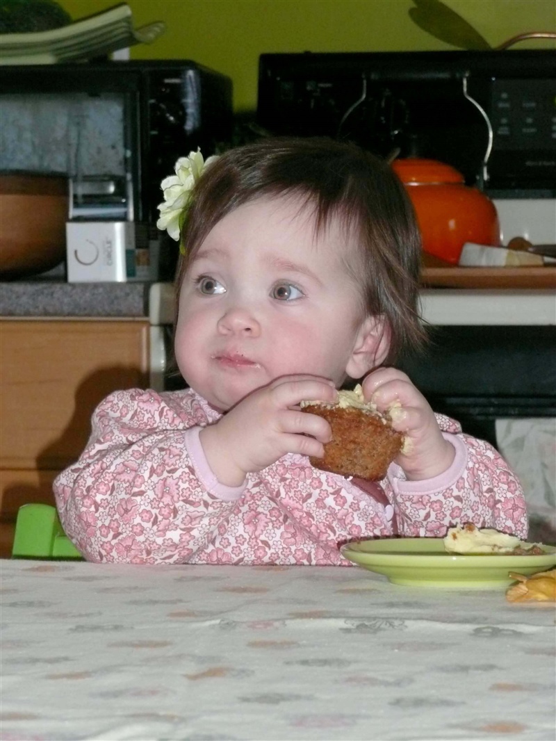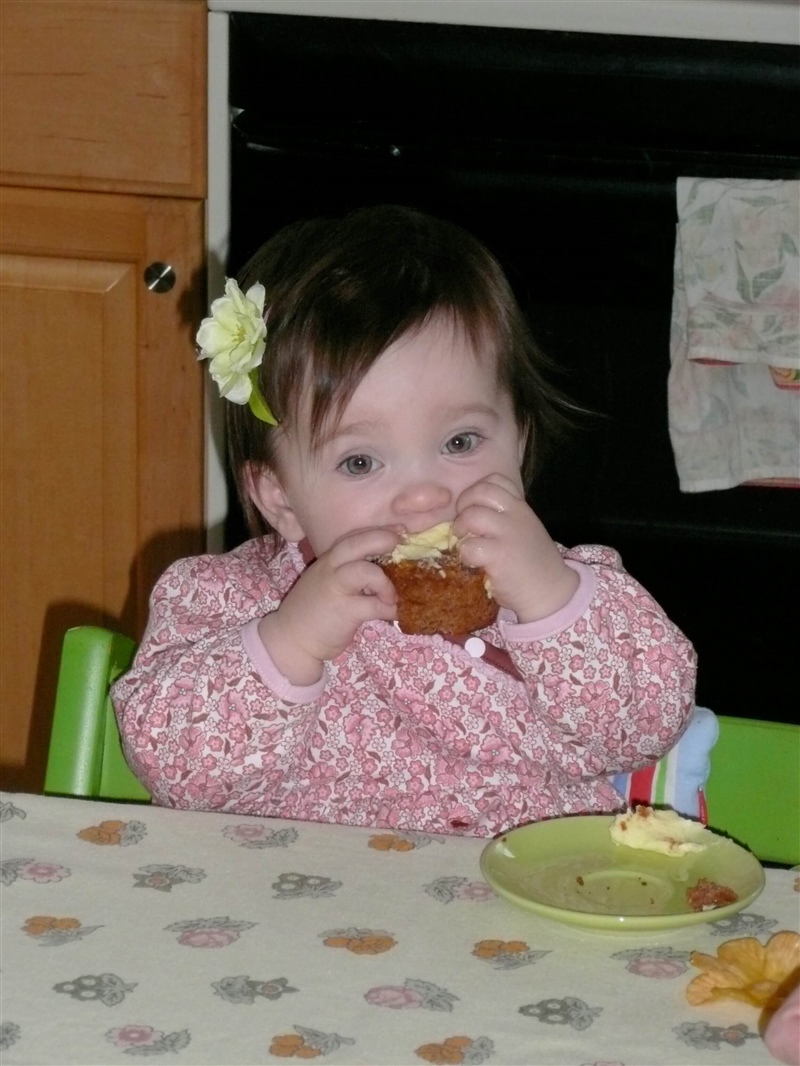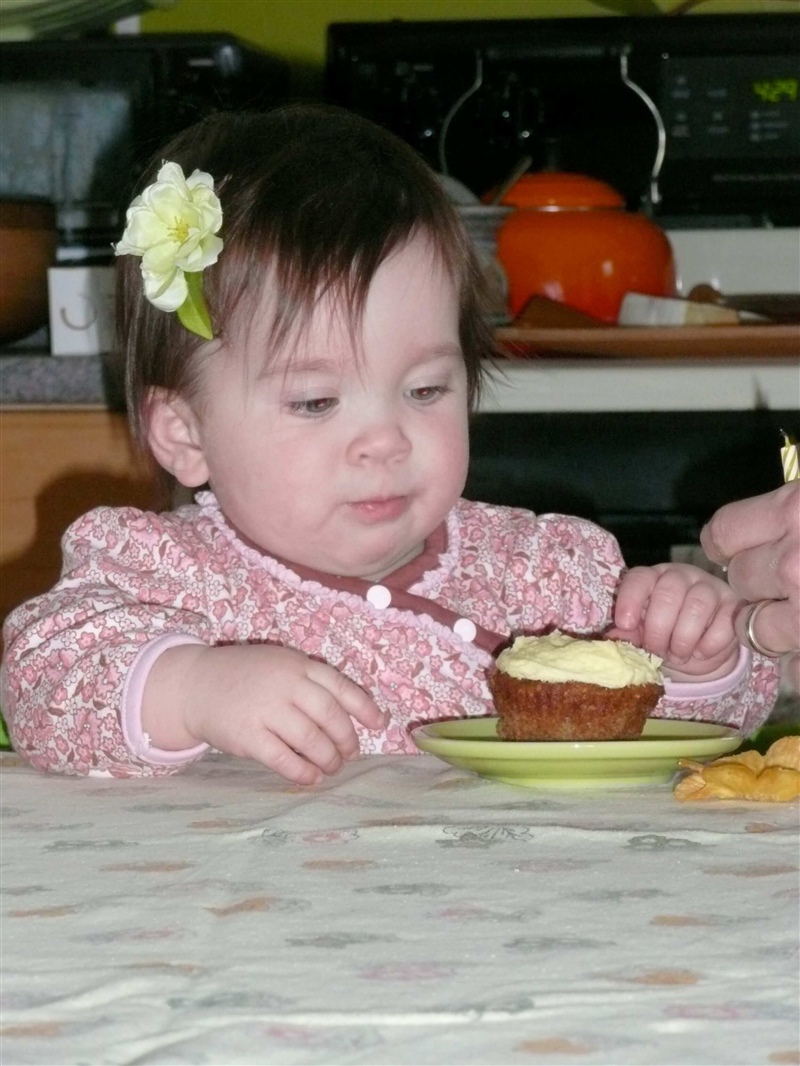 The amazing first year is just about done with (officially on Wednesday, and this afternoon we celebrated her first birthday by introducing her to the magic of a birthday party. Presents were interesting for a bit, but the major event was cake. Unless you count whatever sugar they sneak in to baby food, this was Nora's first how-do-you-do to sweets, and they hit it off very, very well. So well, that she's got a bit of the ol' tummyache tonight. A good cause, though! Thanks to all who shared in the festivities...