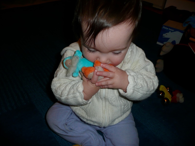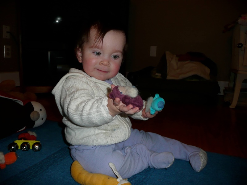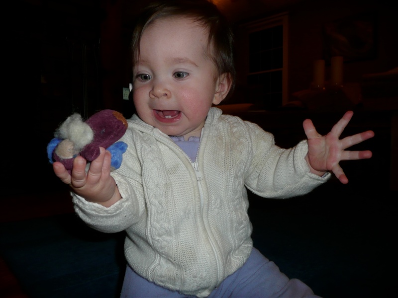 She loves those little gnomes... "Give me my gnomes! I want to hold them, gnaw on them, maybe even yell at them a bit!"