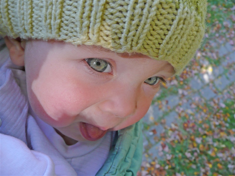 Right now, nothing makes her happier than spending some quality time in the Ergo. Whether she wants to sleep or just hang out, doesn't make much difference. Sitting or trying to crawl takes a lot of work and leads pretty quickly in to frustration, lying on her back is boring and old hat, so strapping in is our newfound nirvana. We also discovered that the camera has a "high angle" setting on the LCD screen, so one can point it almost directly back on oneself and still frame the shot. That means that the wearer can also be the photographer, which gives us something new to do when Mom is out and about and Dad needs something to distract the kid from his obvious lack of breasts.